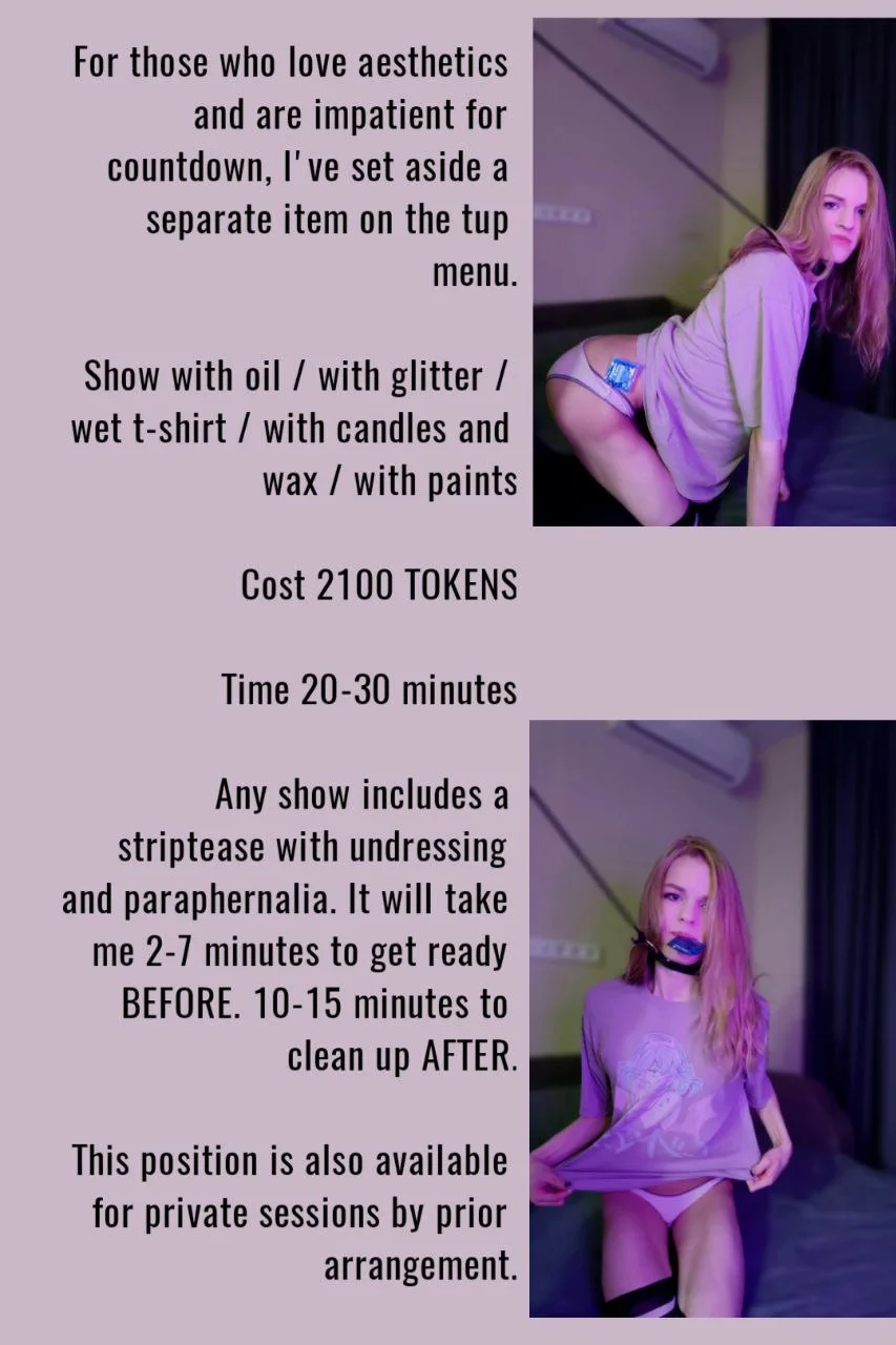 アナル, アナル用おもちゃ, 精飲, ディープスロート, 下ネタ話, ディルドまたはバイブ, 手コキ, フェラ, オナニー, トップレス, ラテックス, スカートたくし上げ, ロールプレイ, ストリップ, 羞恥, エッチなダンス, スパンキング, 足フェチ, SPH(短小恥辱), コスプレ, バックスタイル, ペニス評価